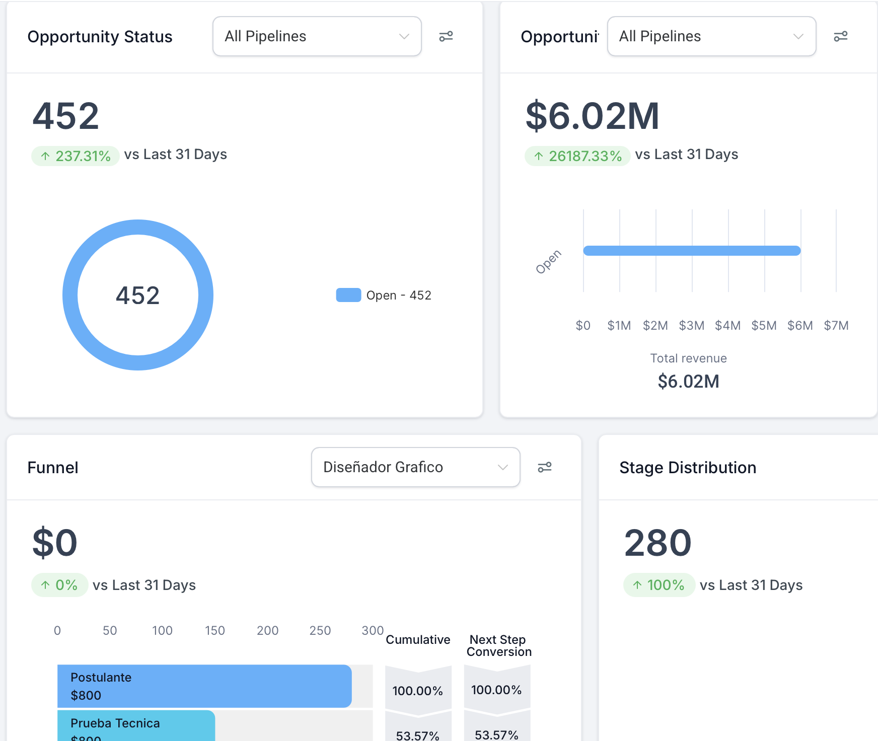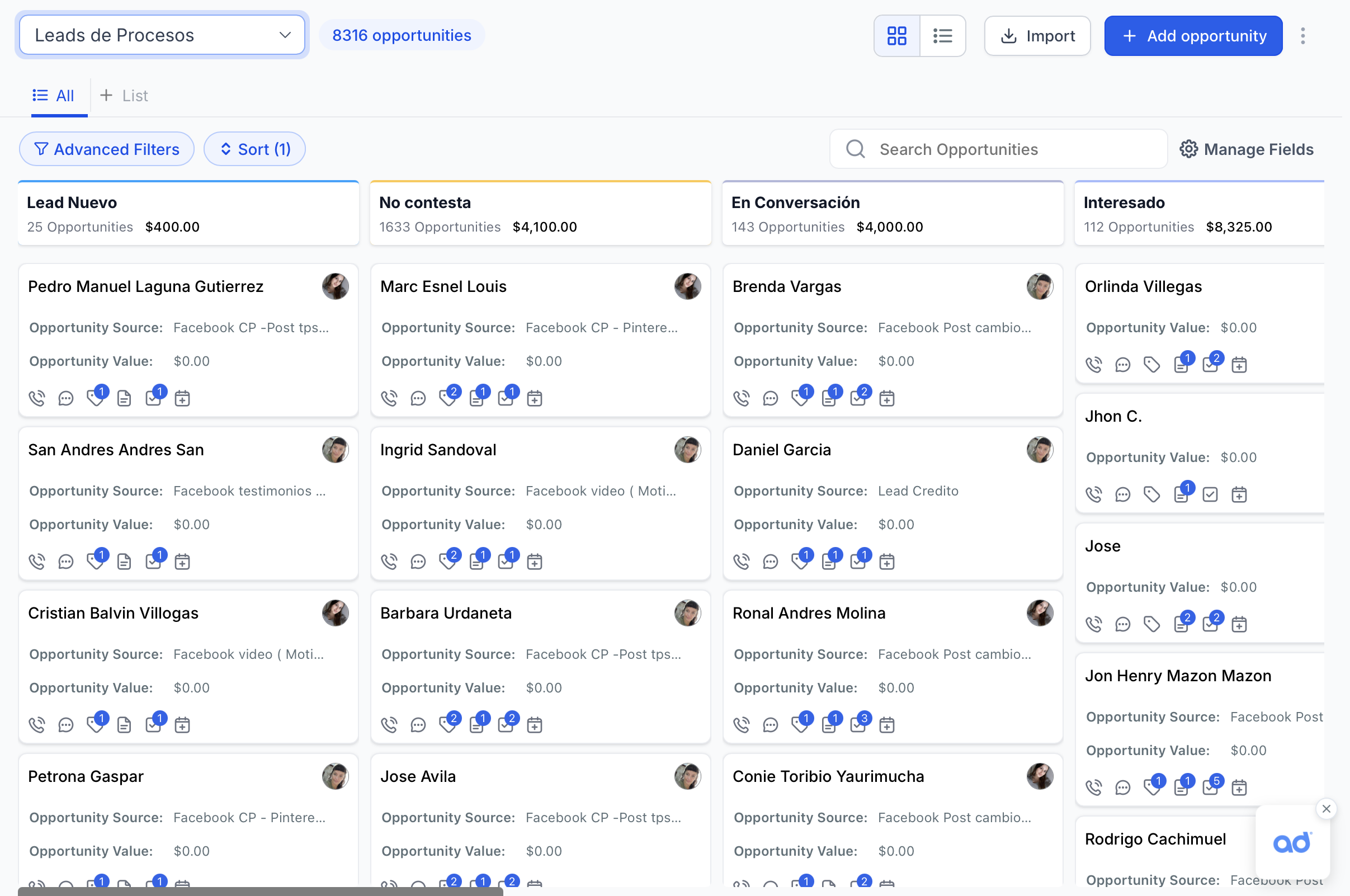 Obtén una visión clara del embudo, gestiona leads con eficacia y automatiza tareas de seguimiento. Personaliza etapas de venta, colabora con tu equipo y recibe notificaciones y alertas. Accede a reportes y análisis para optimizar cada paso.